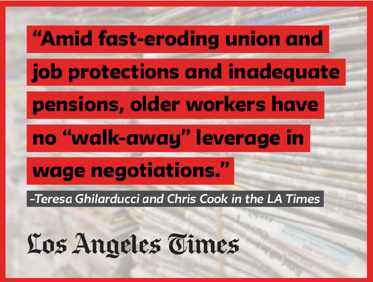 SCEPA’s ReLab produces reports on trends in older workers’ experience in the labor market that often reveal older workers’ unique experiences. In 2021, ReLab’s report on older workers resulted in 33 articles in outlets including The Financial Times, Los Angeles Times, and NBC News. These reports and the resulting media stories called out deepening racial inequalities in job recovery for older workers and explained that older workers were not, as originally assumed, part of the “Great Resignation,” but were retiring early, most likely due to age discrimination.