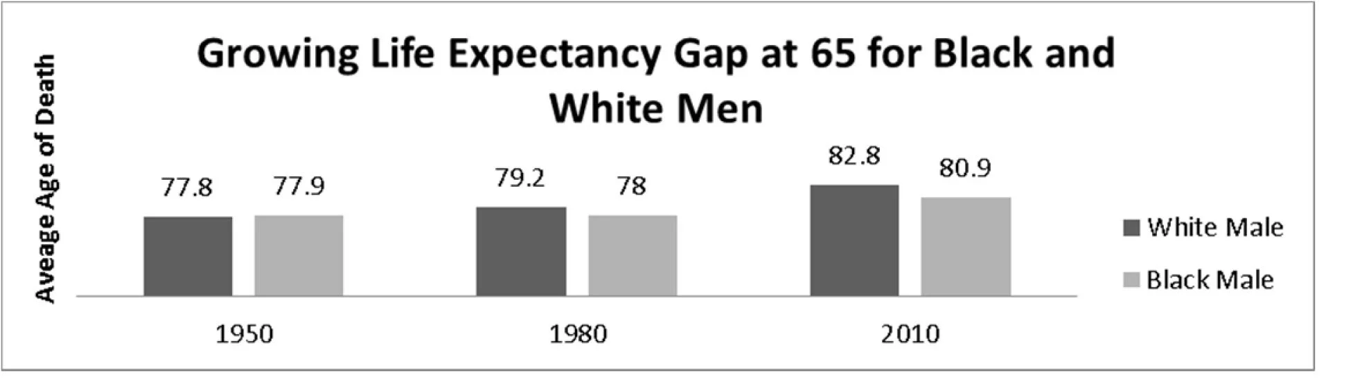 Given that gaps in life expectancy at age 65 exist between black and white Americans, the fact that the “average” American is living longer cannot be used to justify proposals to raise the retirement age. In fact, the data reveal that such a proposal will disproportionately impact Blacks.