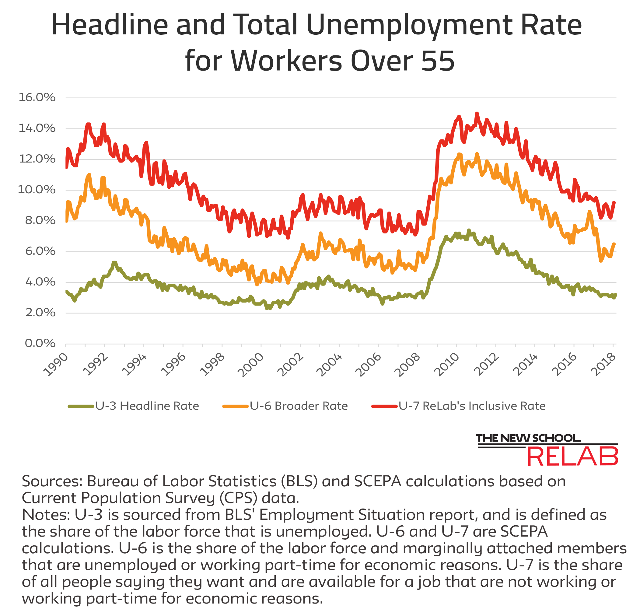 Stagnant wages for older workers and women increases wage gaps and make it harder to save for retirement. Stagnant wages are symptomatic of an “unfriendly” labor market. Older workers who lose their jobs face long periods of unemployment. If they find a new job, they typically face pay cuts of 20% or more.